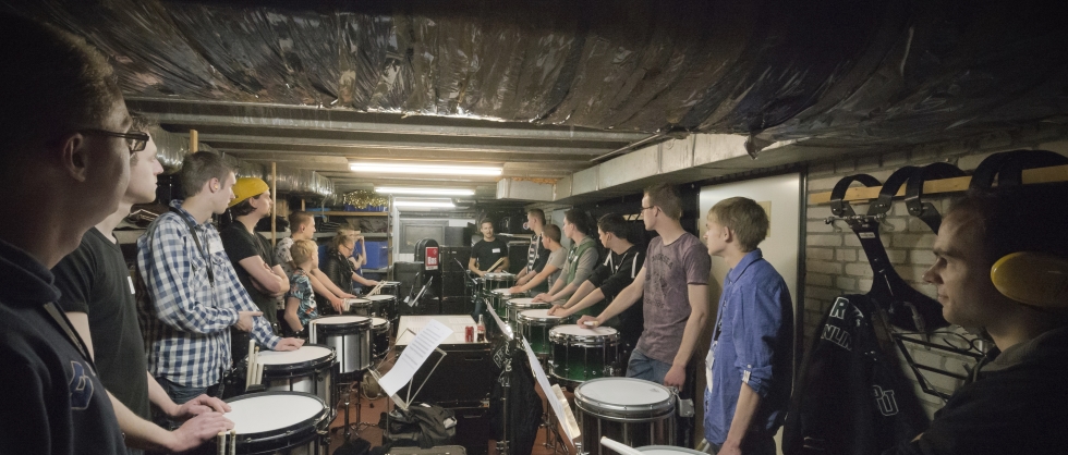 Aan het einde van de middag verzamelden de slagwerkers in de grote zaal van het clubhuis van Wilhelmus Muziekkorpsen. Daar werden de ingestudeerde oefeningen voor het eerst samengespeeld.